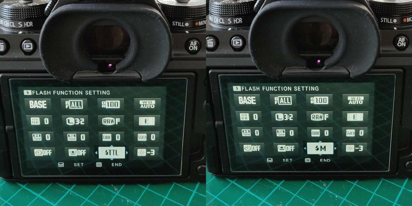 In the XPro-F and X1T-F (cf11=0) configurations, the camera switches to TTL mode. In all the other setups, it stays in Manual mode.
